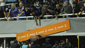 Por otra parte, anoche la violencia se suscitó en la cancha de Boca. Después de que Independiente convirtiera un gol y todo el banco saliera a festejarlo, algunos hinchas “xeneizes” ubicados en la platea preferencial insultaron a los jugadores y al cuerpo técnico, y luego desprendieron un cartel de publicidad para que cayera sobre ellos.