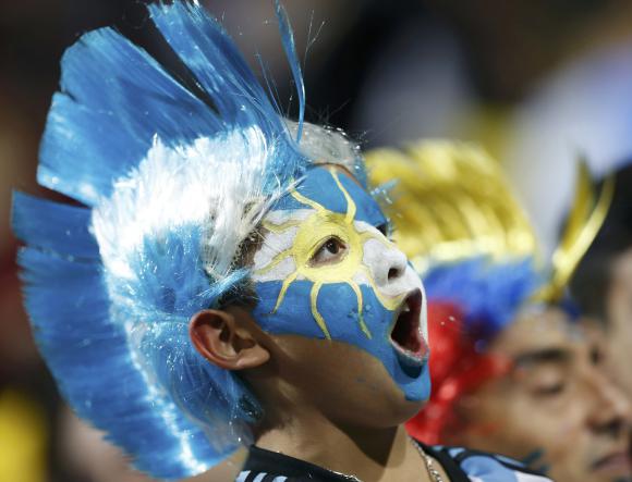 El Sol limpio, sin nubes alrededor, fue uno de los testigos del paso tranquilo de los hinchas colombianos y argentinos para ver a sus respectivos equipos, enfundados con las camisetas de James Rodríguez o de Lio Messi.