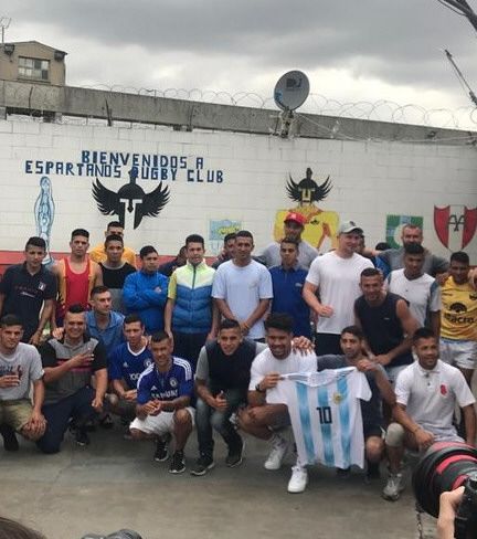 Jugadores de los All Blacks, la selección neozelandesa de rugby, visitaron ayer el penal de San Martín, en la provincia de Buenos Aires, y practicaron con Los Espartanos, el equipo conformado por presos de esa unidad del Servicio Penitenciario Bonaerense (SPB).