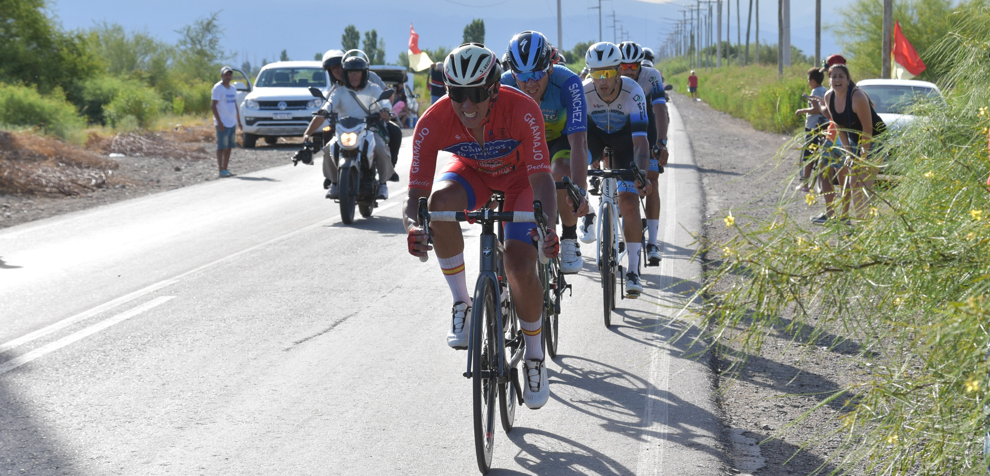A ruta abierta, cuando se venía de “la Difunta” a Caucete, se sucedieron los ataques del equipo Chimbas Te Quiero. Los “diablos rojos” atacaban en parejas, con el objeto de desgastar a los gregarios de Cobarrubia. La imagen grafica esos momentos, con la gente del SEP persiguiendo.