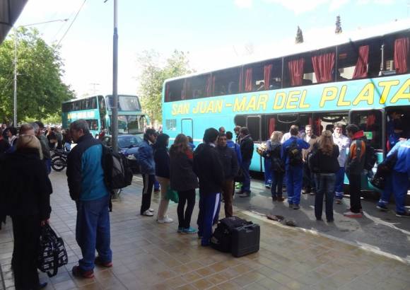 La delegación sanjuanina partió ayer rumbo a San Luis en varios colectivos, apenas pasado el mediodía y desde el estadio Aldo Cantoni. Las ilusiones hoy ponen primera.