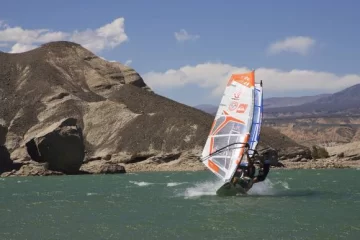 El dique Cuesta del Viento es uno de los mejores lugares para practicar windsurf, es por eso que toda competencia que se organice es aceptada masivamente por todos los amantes del deporte de Argentina. Desde ayer que los alojamientos son escasos en la ciudad el norte sanjuanino, y es por eso que se estima que haya más de 70 participantes en competencia y centenares de acompañantes y espectadores.