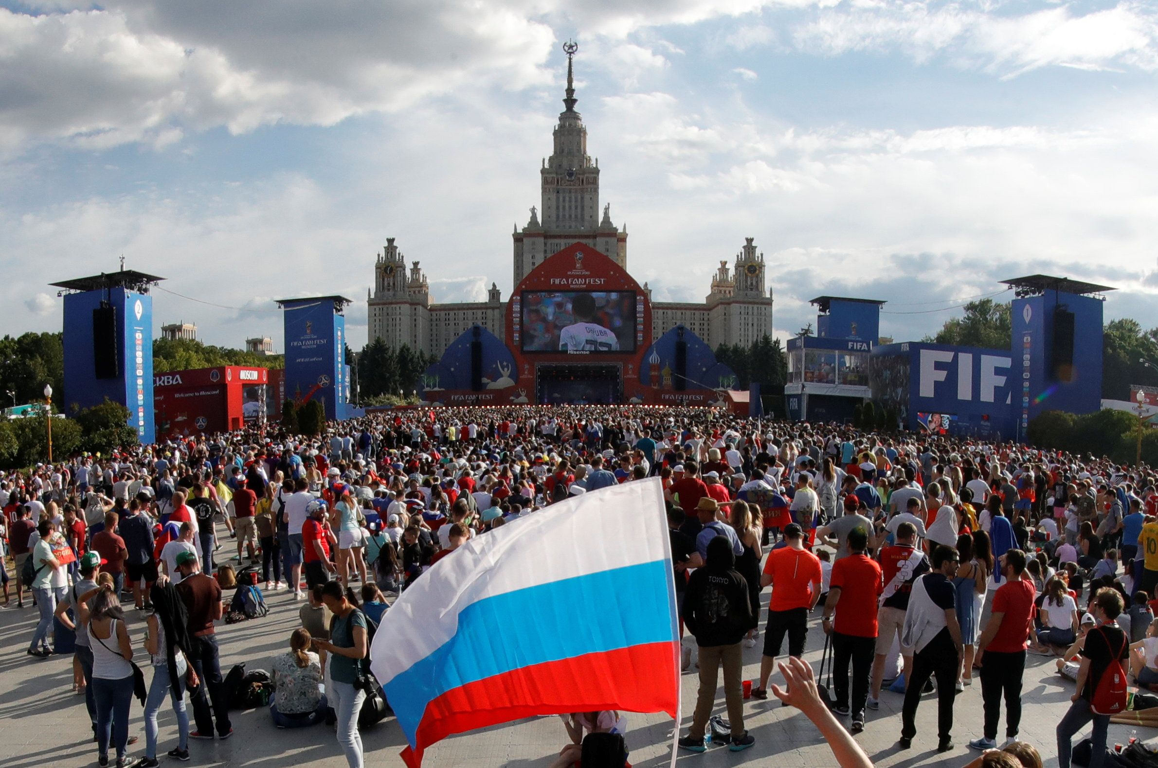 Cruce de culturas, mezcla de nacionalidades, atuendos diversos, una Babel de idiomas, artistas de renombre internacional, entretenimientos, comida típicas, cánticos, merchandising, y sobre todo mucho fútbol. Eso y mucho más tiene el Fan Fest de la FIFA para todos los hinchas, sin distinción, que quieran ver los partidos casi como en la cancha misma, por las pantalla gigantes y con ambiente tribunero. Como el mítico festival musical de Woodstock, en 1969 en Estados Unidos, que pasó a la historia por su masividad y locura, esta celebración de simpatizantes, mientras se transmiten los partidos, es similar por sus características. Es un predio de grandes dimensiones en cada una de las sedes, donde se disputa el Mundial. Allí se respira, grita, se canta, se maldice, se llora y se vibra como en la cancha. Pero el ambiente de festividad es mucho más rico, al convivir hinchas de todas las selecciones participantes y hasta otros que no compitieron como los chinos, los más vistos. También, es usual ver más niños y familias al ser un ambiente abierto y poder disponer de cualquier lugar para ver el partido, en la media docena de pantallas gigantes colocadas en los costados de un gran solar. Una de las características, es que se observa el +juego+ de que aficionados +neutrales+ simpaticen por cual o tal selección, o por el contrario, a qué equipo quieren que le vaya mal. Así, es común ver aliarse a diferentes grupos de nacionalidades contra algún conjunto. Del mismo modo, es gracioso ver cómo se adoptan diversos cánticos tribuneros, en diversos idiomas, y se los amolda a un país. La gran vedette es el cancionero argentino, algo que habitualmente se vio por las calles. Siguiendo con la música, entre las dos o más horas entre cada partido que se transmite se brindan shows con artistas de gran popularidad internacional, como el caso de Tatu (ya no es dúo). Otra ventaja, cuando la pelota no rueda, es que tras las pantallas hay comedores al aire libre como también juegos y otros entretenimientos al estilo de ferias para todas las edades. Para asistir a los Fan Fest no hay requisitos, solo que cuando se colma la capacidad, lo que ocurrió la mayoría de las veces, se frena el ingreso. Uno de los más populares fue el de la capital Moscú, muy cerca del histórico estadio Luzhniki. Hace unos días en el histórico partido para Rusia ante Croacia, cuando acarició el pase a semifinales, estuvo abarrotado y ondearon las banderas tricolores. Ahí, todo la diversidad de hinchas apoyó a los locales, más aún, no se vieron croatas, quizás especularon que serían más visitantes que nunca. Para el segundo tiempo del alargue, con el 1-2 en el marcador, se veía a muchas jóvenes llorar y otros que se retiraban. Pero al momento del empate, el estruendo del gol fue una verdadera detonación, quizás por lo inesperado, que se escuchó hasta en el Mar Báltico. Más tarde, tras la desilusión de los penales, no hubo lágrimas y se entonaron cánticos. De la tristeza, pasando a la emoción, para seguir con resignación, una de las tantos climas que se vive en la fiesta del hincha.