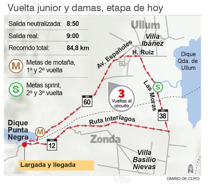 Mañana, viernes la cita será en Pocito, donde se darán seis vueltas a un circuito compuesto por calles Aberastain, Calle 11, Ruta 40 y Calle 14, para cubrir 88,2 kilómetros en total.