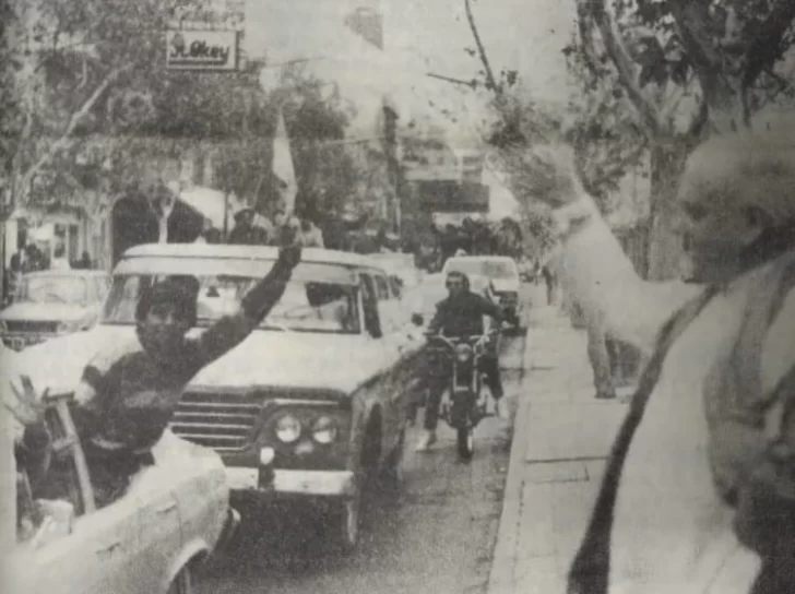 Pocas cosas más típicas del pueblo sanjuanino que celebrar los triunfos futboleros en Plaza 25 de Mayo. Y el 22 de junio de 1986 no fue la excepción. En una tarde fría y nublada, la multitud exultante se acercó con banderas y camisetas a festejar la espectacular victoria de la Selección Argentina ante Inglaterra, con dos goles épicos de Diego Armando Maradona. Caminando o en autos, recorriendo las calles aledañas a puro bocinazo.