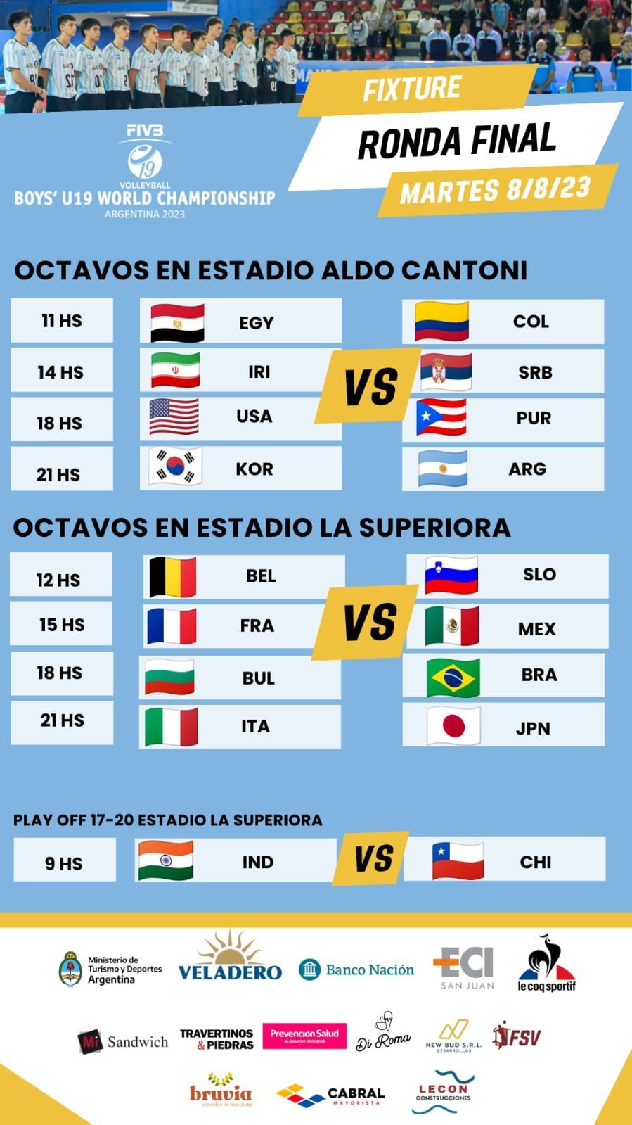 El resto de los cruces de octavos de final serán: Bélgica vs. Eslovenia, Irán vs. Serbia, Francia vs. México, Bulgaria vs. Brasil, Egipto vs. Colombia, Estados Unidos vs. Puerto Rico e Italia vs. Japón.