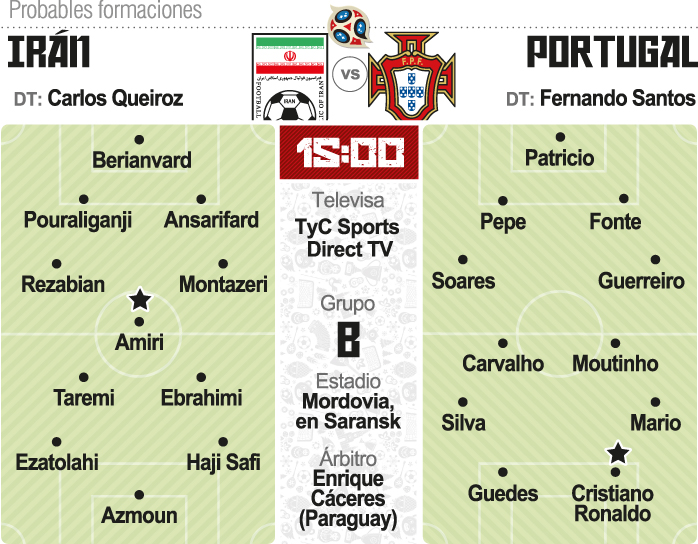 Portugal afronta el encuentro con un punto más que Irán, que necesita ganar o ganar, por lo cual con un empate se asegura el lugar a octavos de final, aunque no el primer puesto, ya que va a depender del resultado entre españoles y marroquíes, que ya están eliminados.