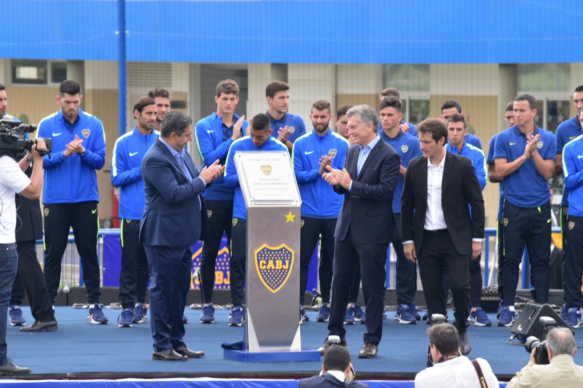 Además de dirigentes, cuerpo técnico y jugadores de la Primera, Reserva, juveniles e infantiles, participaron del acto de inauguración el nuevo presidente de la AFA, Claudio Tapia, y el presidente de la Nación, Mauricio Macri, ex mandamás de la institución, a quien le ofrecieron que el predio lleve su nombre pero no aceptó, “para evitar personalismos y liderazgos mesiánicos en el país”.