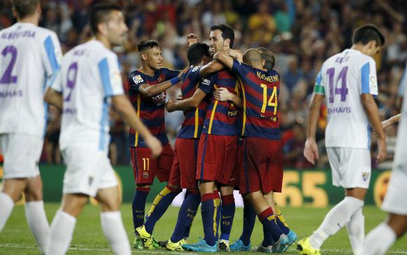 Barcelona, último campeón de la liga española de fútbol, con el crack rosarino Lionel Messi y Javier Mascherano como titulares, venció ayer, de local, por 1 a 0 a Málaga, que tuvo a los argentinos Marcos Angeleri y Fernando Tissone en la formación inicial, y se mantuvo como uno de los punteros, con puntaje ideal, y la valla invicta, tras jugar un partido de la segunda fecha del certamen. El gol del conjunto catalán fue anotado por el defensor belga Thomas Vermaelen (28mST).