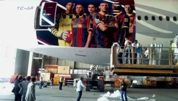 En pocos días, Barcelona estrenará un avión propio. El "pájaro azulgrana" fue diseñado para trasladar al equipo culé al partido frente al Manchester en Londres.
