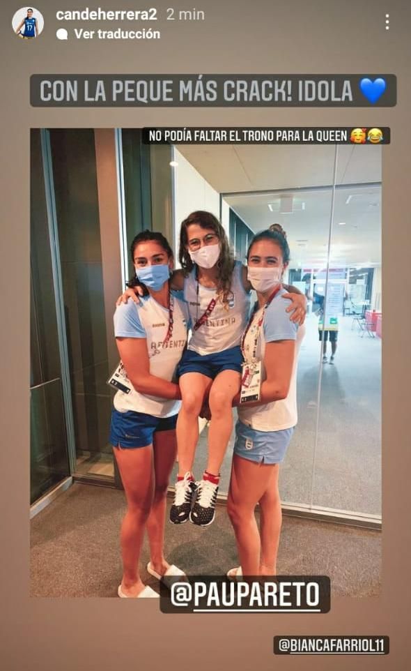 "Con la Peque más crack. Ídola", escribió la deportistas sanjuanina integrante del seleccionado femenimo de Vóley junto a una imagen en la que se la ve sosteniendo a Pareto en "sillita de oro" junto a su compañera de equipo Bianca Farriol.