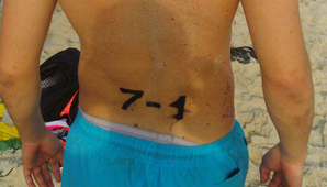 El fortinero explicó que tomó la decisión de tatuarse el abultado resultado en una noche de excesos y alcohol. ‘Fue después de tomarnos todo. Estábamos en un barcito de Copacabana y vino un tipo a ofrecernos los tatuajes y dije loco quiero el 7-1″. dijo el fanático, quien además aprovechó para colocarse su cuenta de Twitter.