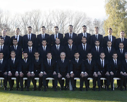 Primera fila: Hugo Campagnaro, Ricardo Álvarez, Federico Fernández, Agustín Orion, Mariano Andújar, Sergio Romero, José Basanta y Martín Demichelis.