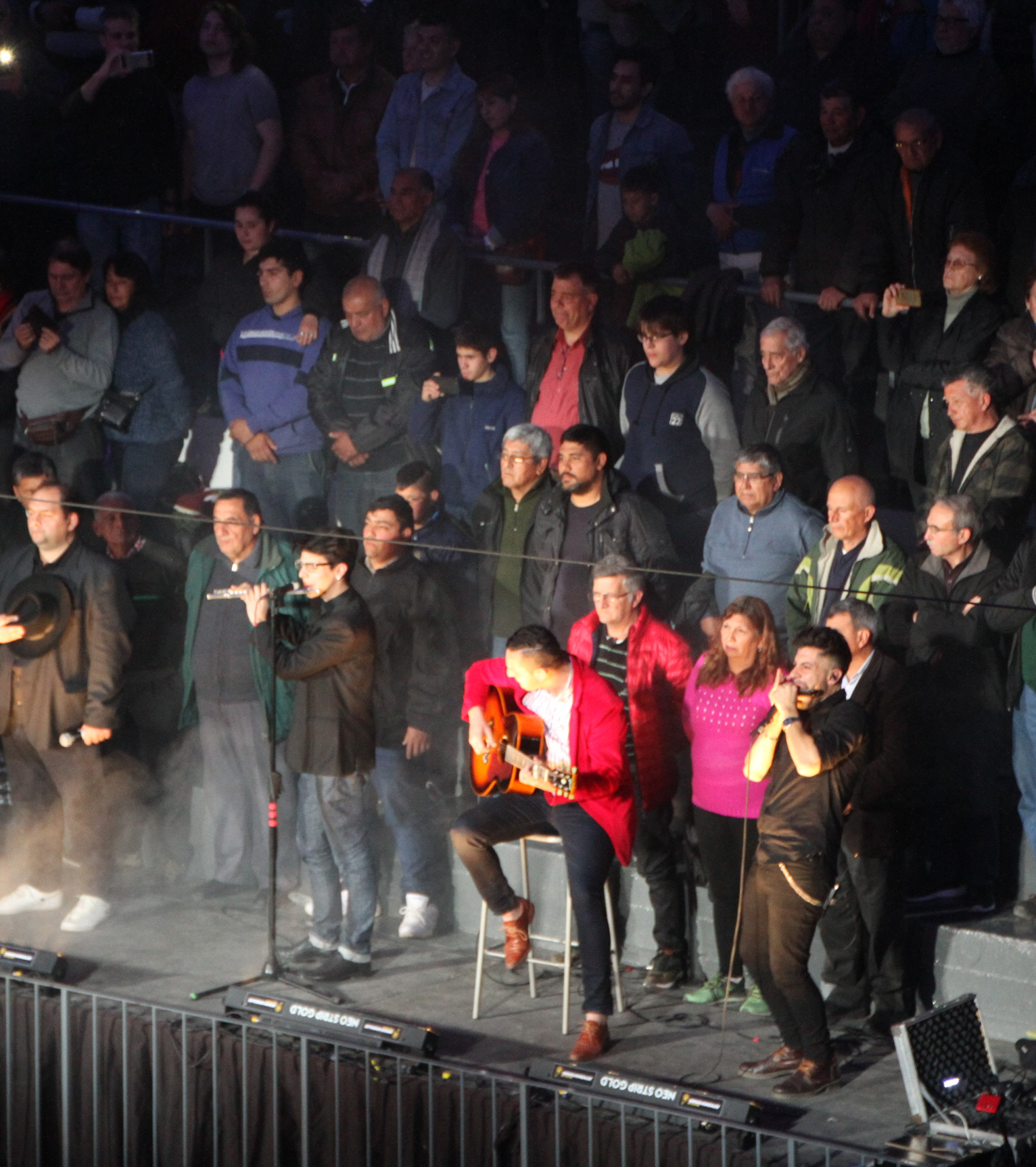 Varios cantantes sanjuaninos fueron los encargados de interpretar el Himno Nacional argentino en la previa a la pelea de fondo en el Aldo Cantoni, entre Leonela Yúdica y Yainireth Altuve.