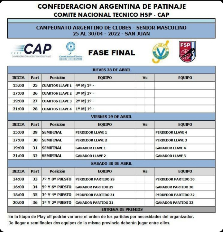 Desde el próximo lunes 25 y hasta el sábado 30 de abril, el estadio de La Superiora vivirá una semana a puro hockey sobre patines con el Campeonato Argentino Senior.