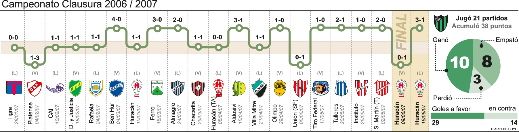 Si hay algo que diferencia al ascenso a Primera División del 2007 con los posteriores (2011 y 2014) es que fue el último que se logró con jugadores genuinos de la provincia. Fue el último plantel verdinegro que no tuvo tanto foráneos. Diez sanjuaninos conformaron ese grupo de futbolistas que le dieron la mayor alegría al club verdinegro. Incluso muchos de ellos fueron titulares. Ariel Agüero, Alejandro Gómez, Mario Pacheco, Marcelo Laciar, Raúl Antuña, Daniel Díaz, Ernesto Fullana, Maximiliano Herrera, Leonardo Avila y Alexander Alvarez identificaron a ese equipo con San Juan.