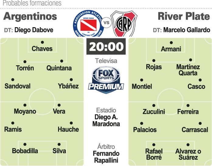 El mediocampo ofrece más variantes con los ingresos de Bruno Zuculini, Cristian Ferreira y el colombiano Jorge Carrascal por Enzo Pérez, el uruguayo Nicolás De La Cruz e Ignacio Fernández, respectivamente.