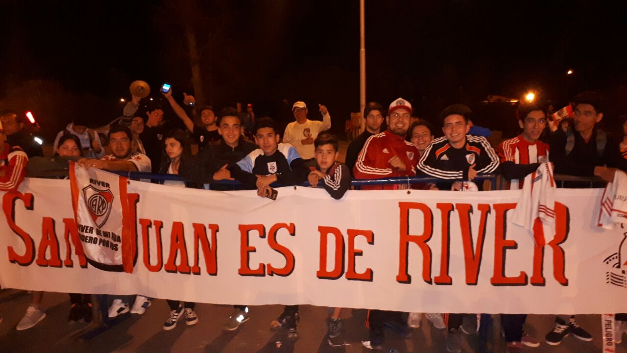 Alrededor de las 20 comenzaron a llegar los primeros hinchas millonarios a las puertas del hotel Viñas del Sol, donde se aloja el plantel de River en la previa del partido que disputará en el Hilario Sánchez contra San Martín.