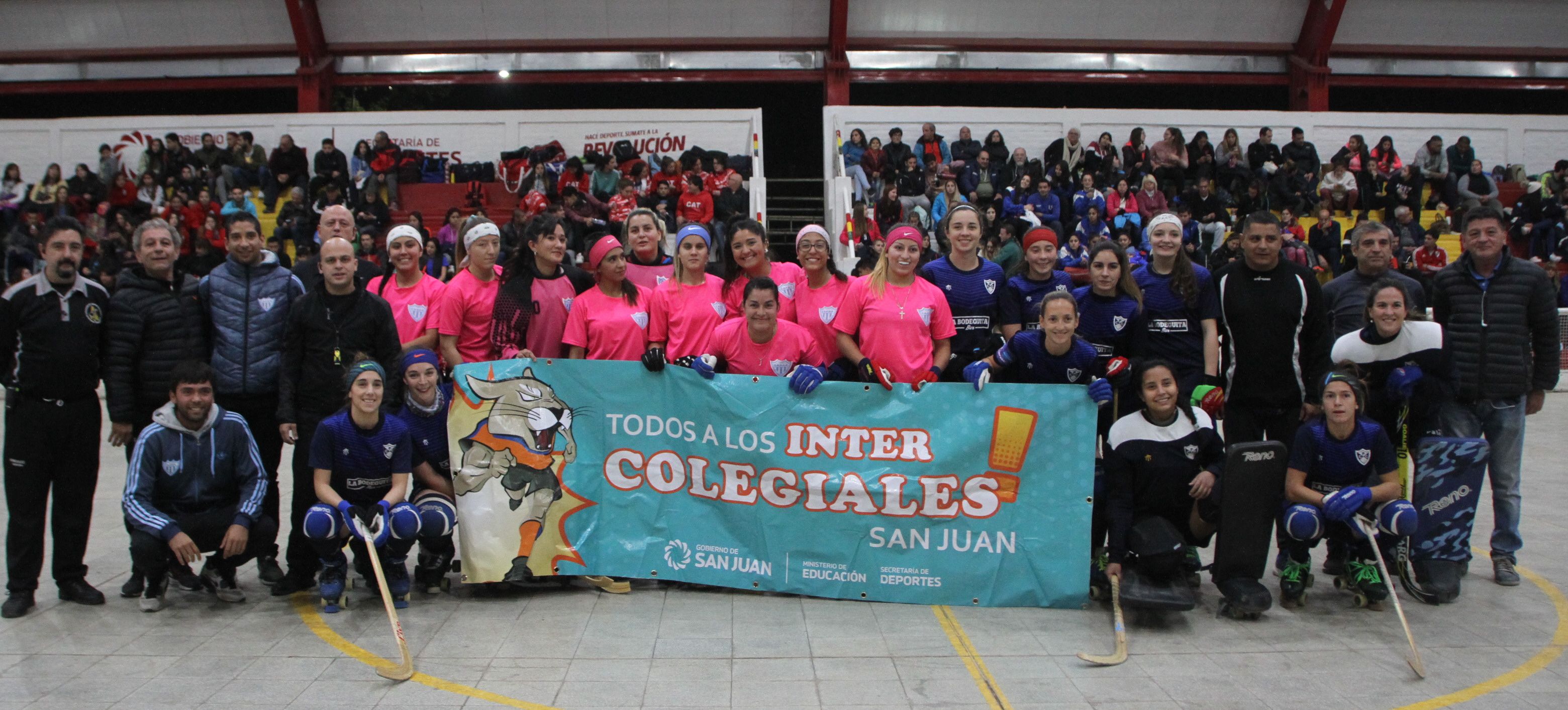 Las chicas de los equipos que participan en el Argentino de hockey apoyan los Juegos Intercolegiales 2018 próximos a iniciarse (contarán con este deporte). Ayer, en cada uno de los partidos por cuartos de final, en sus inicios, los dos equipos rivales, con sus cuerpos técnicos, y los árbitros posaron con el cartel correspondiente. Por Intercolegiales estuvieron los profes Juan Ferruccio y Walter Cavalli.