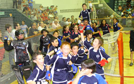 Sonó el silbato de la mesa de control y, desde el banco de suplentes, los que estaban ahí salieron despedidos a abrazarse con sus compañeros. Hicieron todos un ramillete de felicidad y festejaron a más no poder. Eran los chicos de Concepción. Los “Azulitos”, que se coronaron anoche campeones de la 24ta edición del Encuentro de Mini-hockey sobre patines “Francisco Montes”, que organizó la Bancaria, al ganar el partido final por 8-5.
