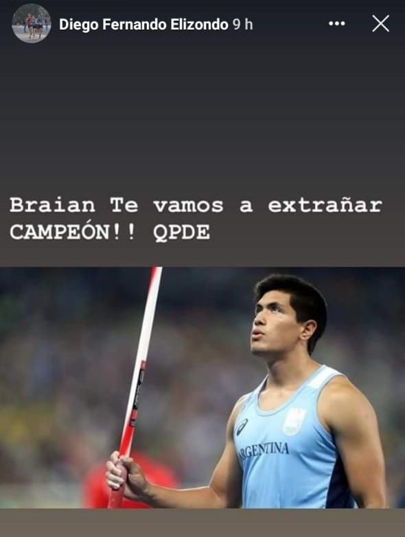 La trágica muerte de Braian Toledo pegó fuerte en el deporte argentino y los atletas sanjuaninos no quedaron aislados de la conmoción y el dolor. Al menos tres reconocidos deportistas locales despidieron al lanzador de jabalina a través de sus redes sociales.