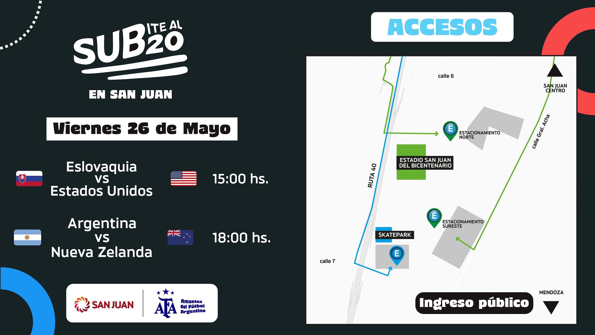 Es importante recordar que esta prohibido ingresar con bebidas, comida y mate. Con respecto a lo sucedido en la ultima jornada el Gobierno de San Juan intervino con AFA y las autoridades de FIFA permitirán el ingreso de banderas o remeras de no más de 2 x 1 metros alusivas a las Islas Malvinas y a colores de bandera que representen a cada aficionado. Vale destacar que no esta permitido ingresar con banderas que inciten a la violencia.