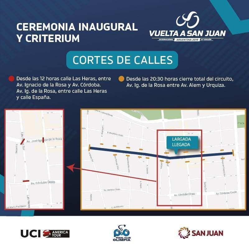 Una vez que finalice el desfile, alrededor de las 22:00, se pondrá en marcha el Criterium denominado “Unión Suramericana de Ciclismo”. La competencia comenzará en calle Las Heras y España. Viajarán por Ignacio de la Roza hacia el este hasta topar con Plaza 25 de Mayo. Los ciclistas realizarán un giro a la misma para retomar por Ignacio de la Roza. Por la Avenida circularán derecho al oeste hasta Paula Albarracín de Sarmiento donde virarán hacia el este para retomar al Teatro del Bicentenario. Allí se cumplirá un giro que cuenta con 5,5 kilómetros de extensión. Serán tres giros por lo que cada tanda completará los 16,5km.