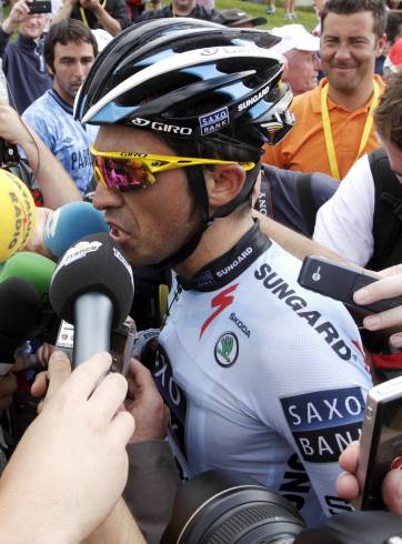 Mermado por los problemas en su rodilla, que le impiden correr “de forma natural” y que le obligan a “cambiar de estilo”, Contador aseguró que se vio incapacitado para atacar en los Pirineos como le hubiera gustado. “No tuve piernas porque sino habría probado, porque es mi forma de correr y por el ambientazo que había allí”. Contador se refirió a la actitud de los hermanos Schleck y dijo que cada vez tienen menos margen para decidir cual luchará por la general.