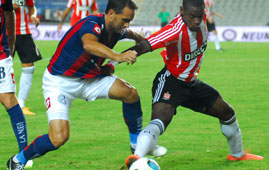 San Lorenzo, en una primera parte aburrida y con escasas ocasiones de gol, tuvo en gran porción del tiempo la pelota en su poder, pero sin claridad. Es más, la primera aproximación clara del visitante se produjo de pelota parada a los 29, con un tiro libre de Fabián Bordagaray, bien desviado al córner por el arquero Agustín Silva.