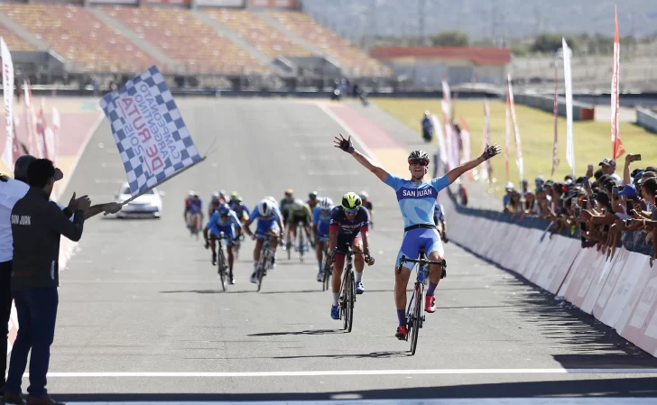 Ya adentro del trazado de 4.266 metros, en lo que fue el escenario ideal, un campeonato argentino de ruta. Emiliano -El Gringo para todo el mundo- Contreras, corrió y ganó como lo que es, un verdadero campeón. Estuvo lúcido para prenderse en la fuga del día, ocurrida ocho giros antes de los 27 estipulados. Se mostró astuto para correr con inteligencia, aportando lo justo y necesario en la escapada con Lucas Gaday (Sanluiseña), Daniel Lucero (Riojana) y Franco López (Oeste riojano). Y fue contundente a la hora de rematar su tarea, embalando como una moto ante Gaday, quien se apuró por la cercanía del pelotón, y levantó un embalaje demasiado largo que benefició a Contreras, menos veloz pero más fuerte, quien cuando faltaban 80 metros lo superó con una convicción propia de quien recuperó la memoria en el momento y el lugar exactos. El Gringo volvió a ser ese gran ciclista que prometía. Con mentalidad ganadora y una potencia inusitada, que cuando encendía motores hacía vibrar todo.