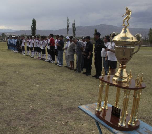 Previo al partido entre Sport Argentino y Sarmiento, se realizó el acto de apertura de la Copa de Campeones, con el trofeo Challenger DIARIO DE CUYO como centro y el premio que se llevará el campeón. Miguel García, el presidente de la Liga Arbardón-Angaco encargada para la organización en esta edición, en una corta alocución dio por inaugurado el torneo, agradeció la presencia de las autoridades de las demás ligas participantes (Calingasta, Jáchal, Caucete, San Martín y 25 de Mayo) y bromeó con que el campeonato se debe quedar en Albardón. Luego los capitanes de ambos equipo izaron la bandera Argentina y luego arrancó el partido.