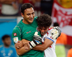 Borges, quien anotó el primer penal de los centroamericanos en la definición desde los doce pasos en la que se impusieron el domingo 5-3 a Grecia, elogió al portero del Levante español por su espectacular atajada a Theofanis Gekas en la serie, que permitió que Michael Umaña le diera posteriormente la clasificación a los dirigidos por Jorge Luis Pinto.