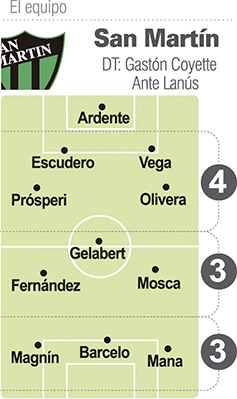 Además de repetir nombres, Coyette volvería el 4-3-3 punzante que debió modificar ante Olimpo debido a la urgencia del rival, ya que el bahiense se jugaban la permanencia y buscó un desempeño más ofensivo, pese a que no pudo plasmarlo, terminó perdiendo y a su vez descendiendo a la Primera B Nacional. Por ello en San Martín, con los mismos nombres, la apuesta ante Lanús se redobla.