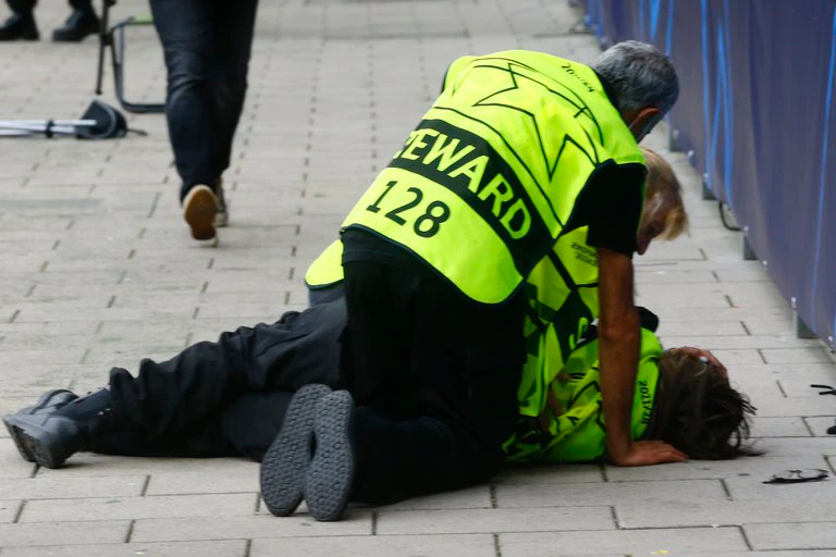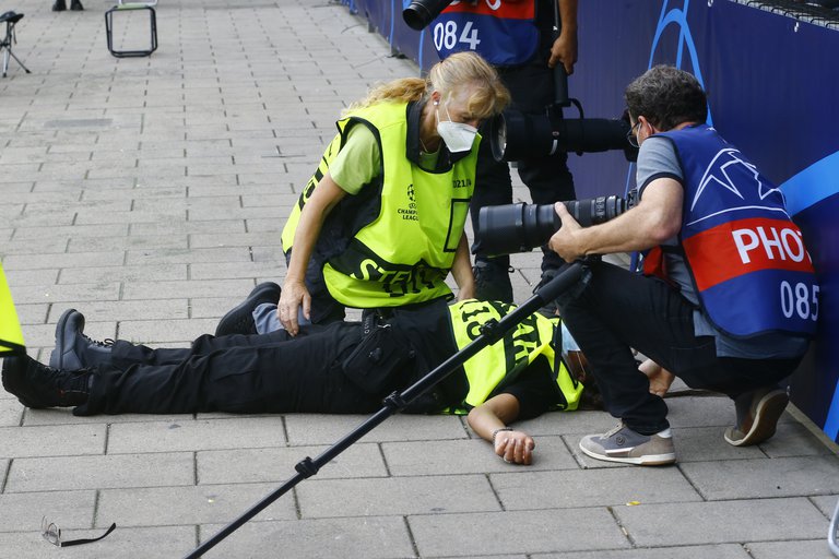 Según constató la agencia Reuters, después de advertir lo que había sucedido, el propio delantero se acercó al lugar en donde la mujer se encontraba recostada en el suelo boca arriba mientras era asistido. Según explicaron, la potencia del disparo lo dejó mareado y por eso tuvo que abandonar su lugar y tomarse unos minutos para recuperarse.