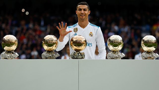 Este sábado, en los instantes previos al partido entre Real Madrid y Sevilla –correspondiente a la decimoquinta fecha de la liga española- Cristiano posó con los cinco Balones de Oro que ganó hasta el momento y fue celebrado por todo el Bernabéu.