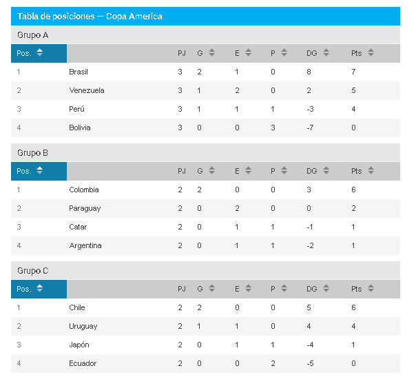 Se cerró el Grupo A de la Copa América y la Argentina ya tiene un panorama más claro de qué necesita para clasificarse a cuartos de final. La derrota por goleada de Perú ante Brasil dejó a los del Tigre Gareca con 4 puntos y peor diferencia de gol que la Selección, con lo cual un triunfo frente a Qatar el domingo, aunque sea por la mínima, asegura el pase para Messi y compañía como uno de los mejores terceros, independientemente de lo que pase el lunes con Japón (1 y -4) y Ecuador (0 y -5).
