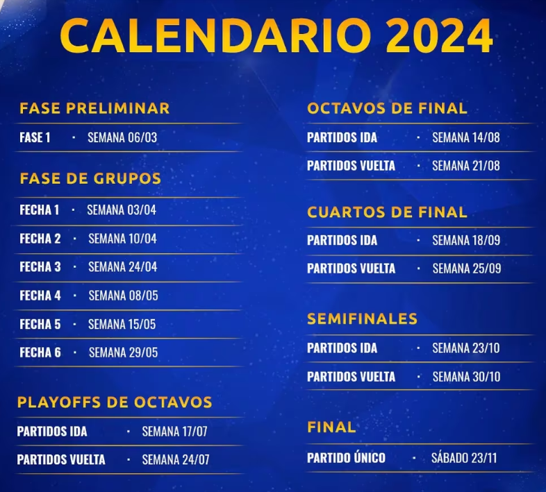 Desde 2017 que el club de la Ribera no se quedaba afuera de una edición de Libertadores, 10 años después de su último título en esta competencia en 2007, con Miguel Ángel Russo como entrenador y Riquelme como estandarte y figura dentro de la cancha. En este contexto, la Conmebol dio a conocer el calendario para las dos citas más importantes del continente que se detallan a continuación: