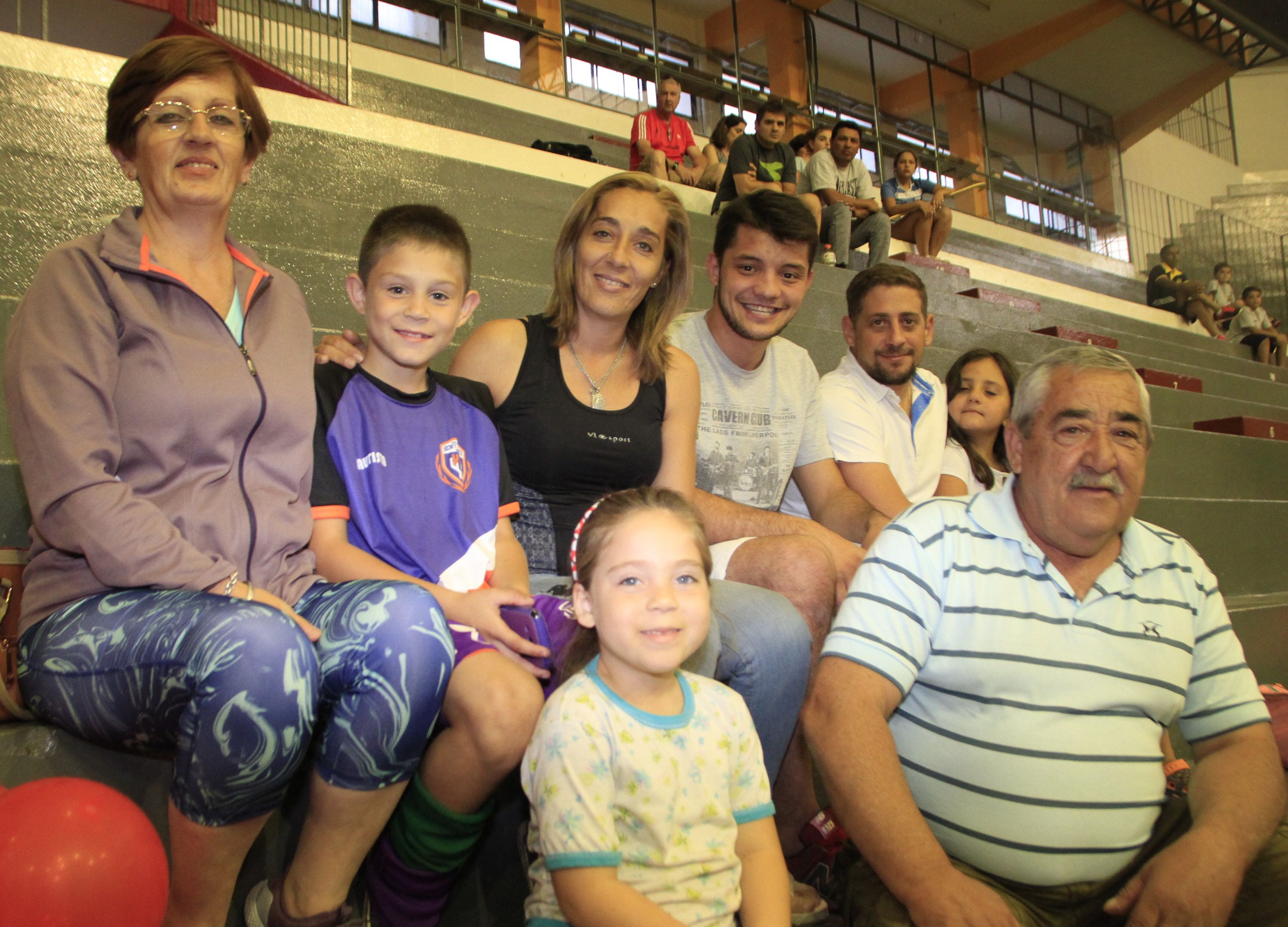 En el ADN. Bautista junto a su mamá Leila, su hermanita Laureana, sus abuelos Lita y Miguel y sus tíos Pablo y Mauricio. Los Romero traen el hockey incorporado en la sangre y el chiquito ya está dando que hablar.