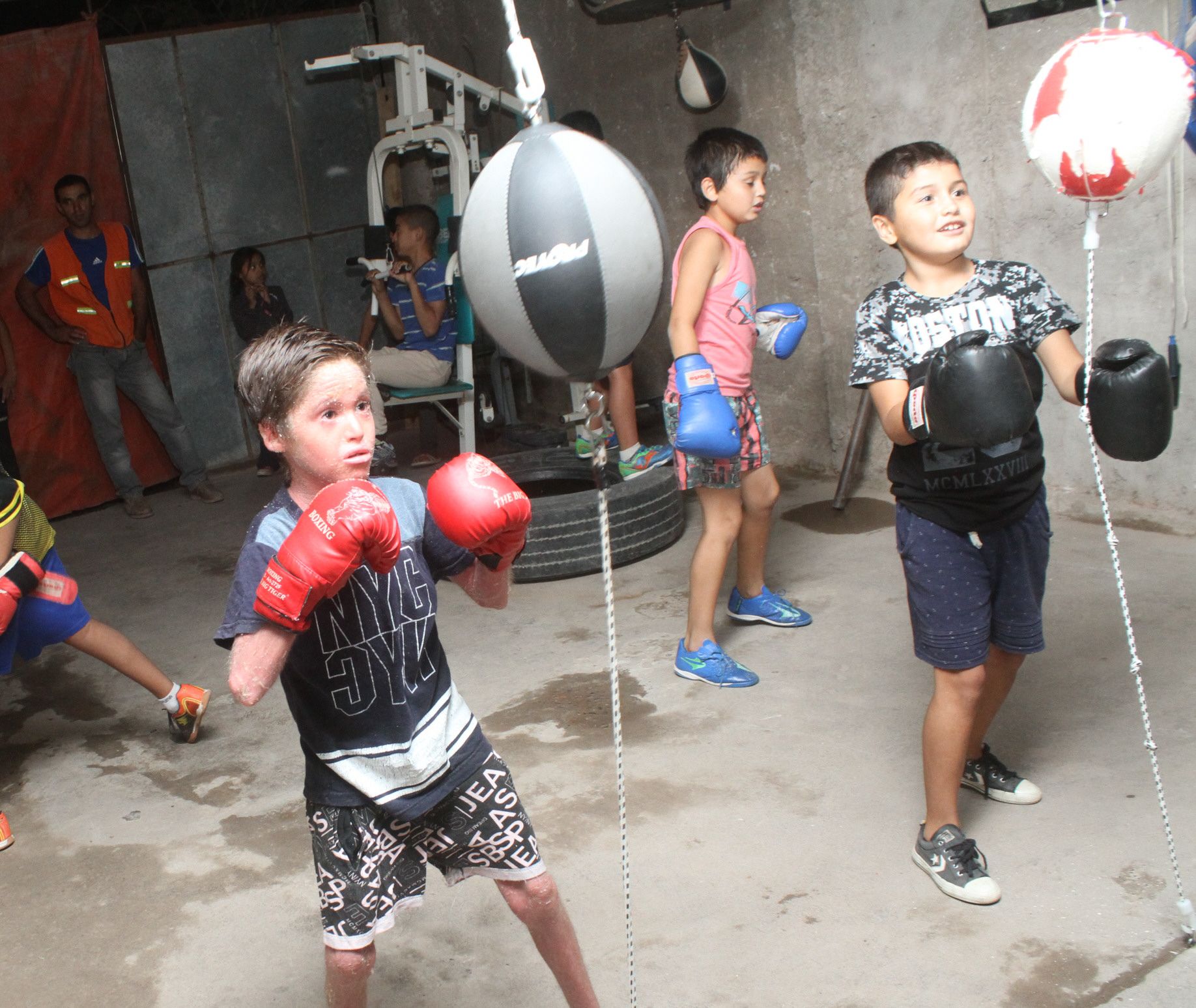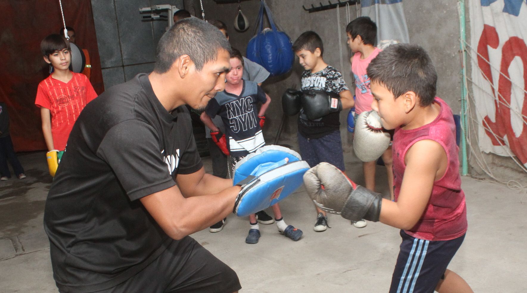Y eso es lo que pasa en la casa de Mauricio Muñoz, en el barrio Los Zorzales, Rivadavia. Allí, el “Negrito”, doble retador mundialista, y su hermano Ricardo, ex boxeador, enseñan los primeros palotes del deporte de fistiana a unos 15 chicos que pagan su cuota mostrando sus cuadernos. Saben que si andan bien en la escuela podrán ponerse los guantes y calzarse un cabezal. Esos niños, vecinos del lugar y también de los barrios, Cerro Blanco, Cuyo (La Bebida), Marquesado 1, 2 y 3; de la Villa Larga y del Loteo Los Olivos; acuden cada tarde -después de las 18:30 cuando regresan del colegio al gimnasio que el púgil ha montado en un galpón al que le faltan puertas, pero le sobra afecto.