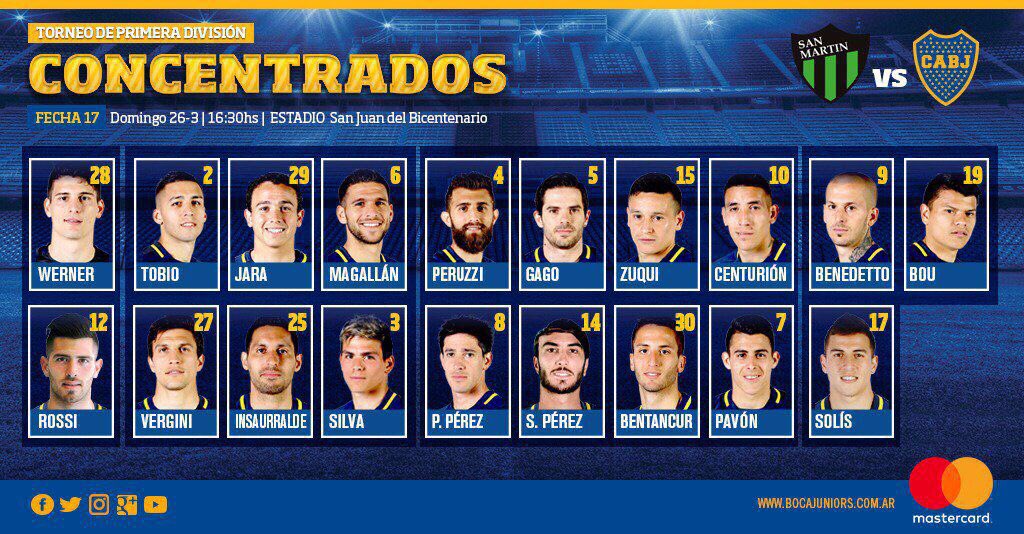 Pese a ser puntero absoluto del campeonato, el conjunto de Guillermo Barros Schelotto tiene la necesidad de revertir la mala imagen que dejó frente a Talleres y para ello el DT prepara lo mejor que tiene para su llegada a San Juan. Esta mañana, en rueda de prensa, el Mellizo confirmó quiénes son los jugadores concentrados para enfrentar el domingo a San Martín.