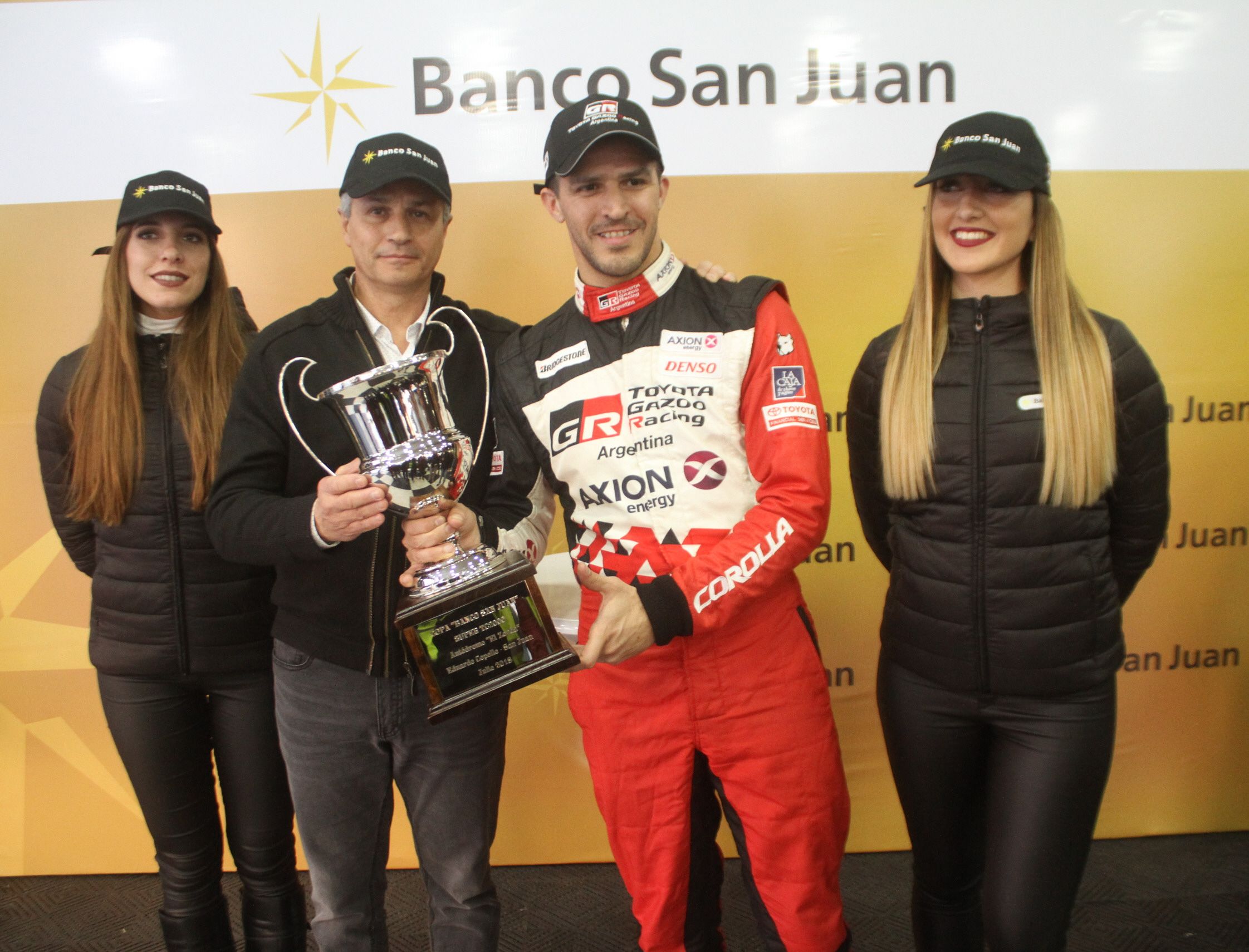 Distinción. Rossi fue distinguido por Banco San Juan por ser el protagonista del sábado. La copa la entregó Marcelo Zunino.
