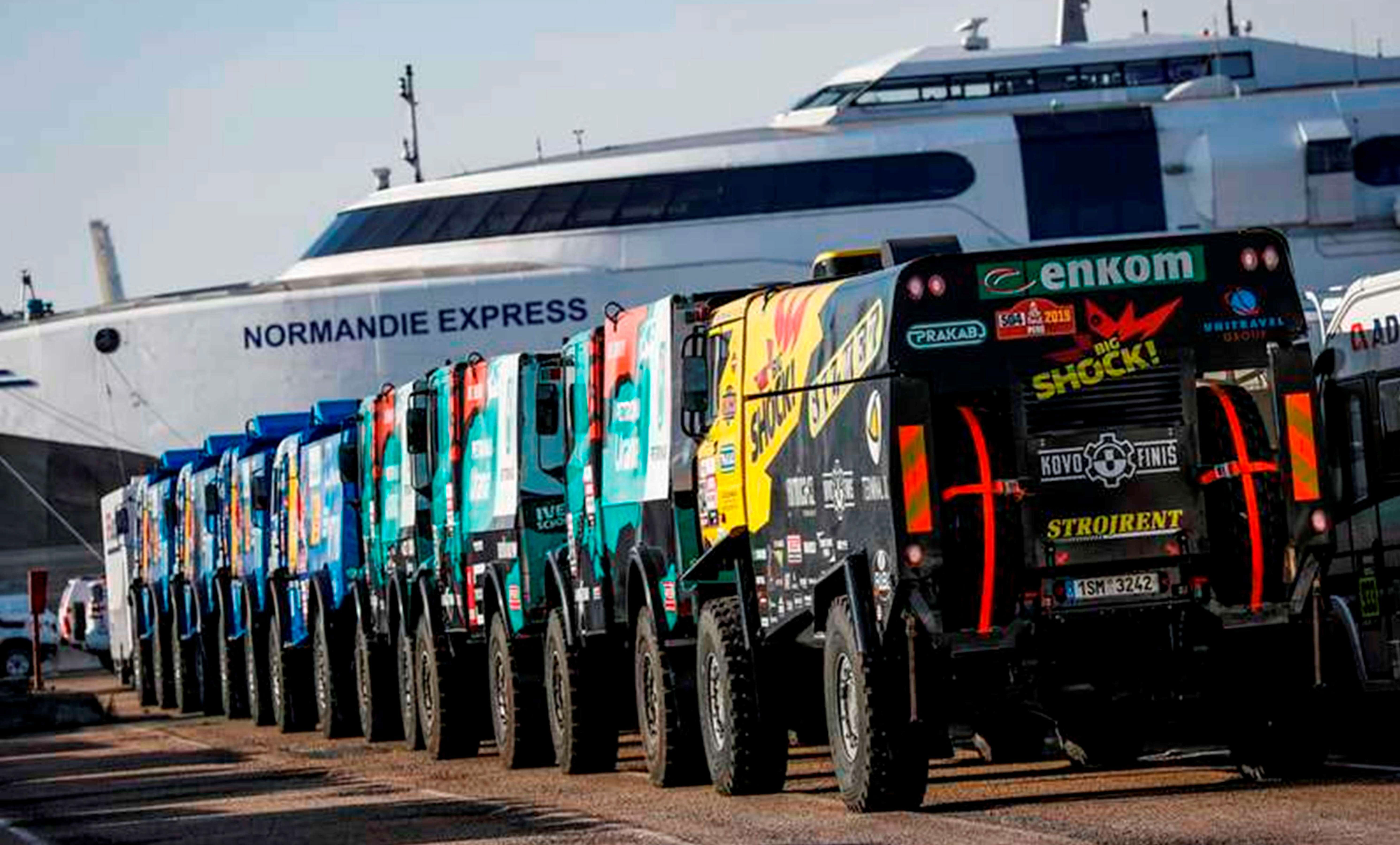 El buque Heritage Leader, con bandera de Bahamas, transportó cerca de 270 vehículos de carrera, más 79 autos, 163 camiones de asistencia, 59 coches de prensa y 30 de la organización.