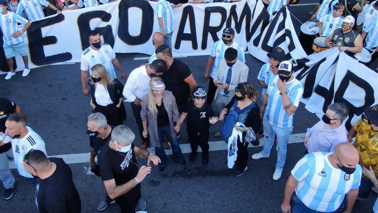 También participan de la movilización Verónica Ojeda, una de sus ex parejas, y Dieguito Fernando, otro de sus hijos.
