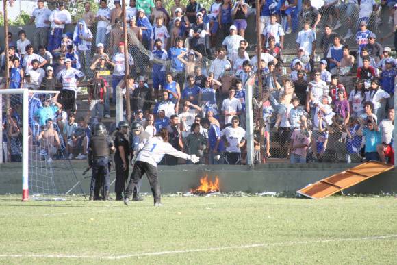 Es que el pasado domingo, en el partido entre Alianza y Unión, hubo destrozos en la cancha, justamente en la cabecera sur donde se ubicaron los seguidores del Azul, que rompieron el alambrado, los postes, los parapelotas, entre otras cosas.