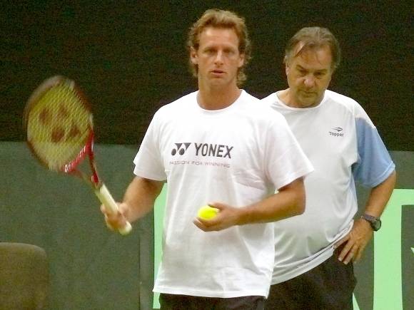 En ese sentido, está claro que el sábado jugarán el dobles Chela y Schwank, mientras que la idea de "Tito" es que el viernes lo hagan en los singles Nalbandian y Mónaco, quien fue muy exigido en la práctica de ayer.