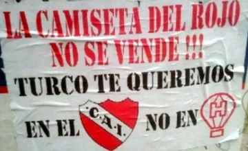 Ayer en el entrenamiento del plantel de Independiente, los hinchas colgaron una bandera que decía: “Turco, la camiseta no se vende”. De esta manera los simpatizantes del Diablo de Avellaneda le meten presión al DT que es un confeso hincha de Huracán y que hoy enfrentará, con el equipo que dirige, cuando los del Globo se juegan todas las chances para poder jugar la promoción y no irse directamente al descenso.