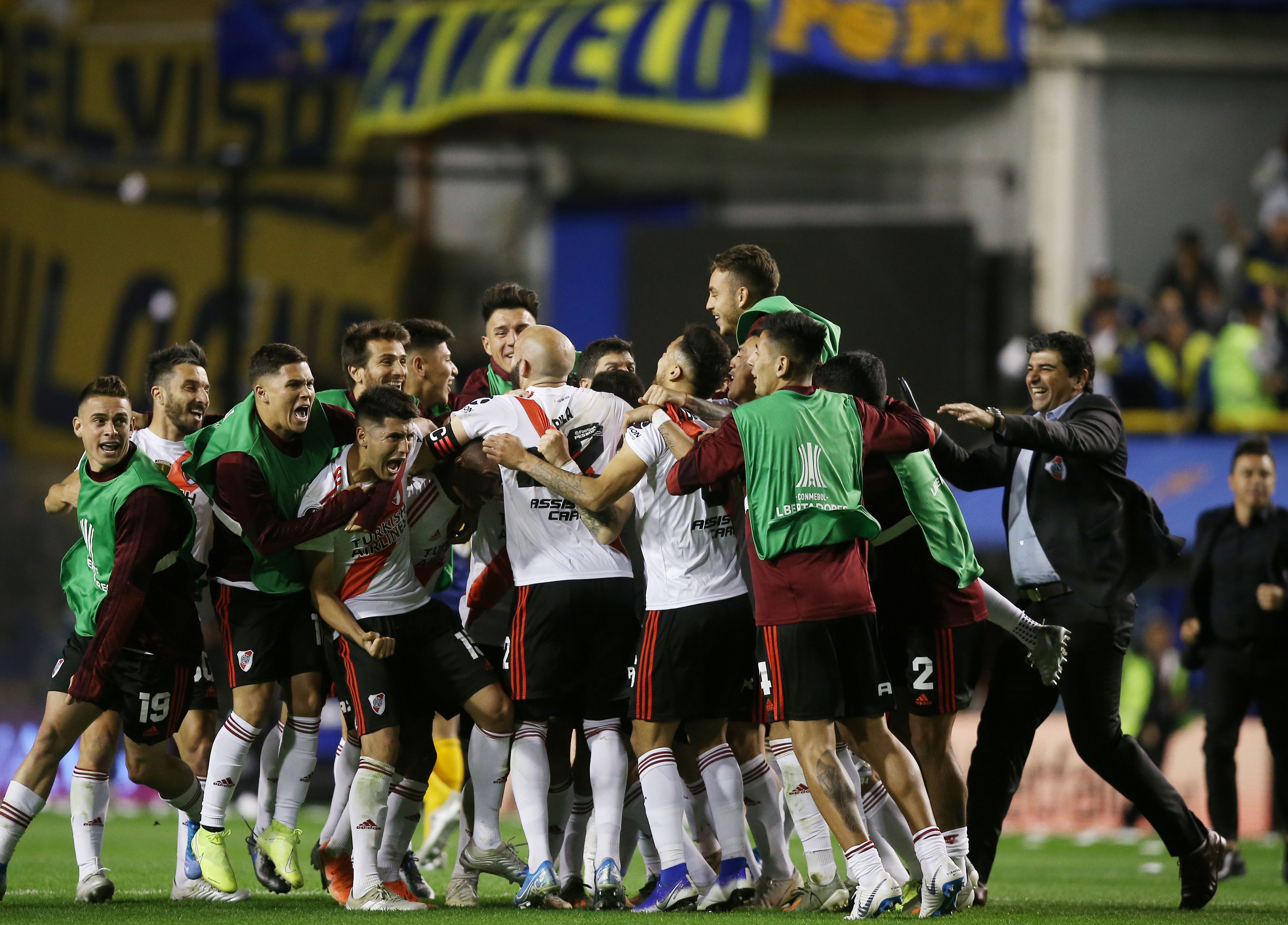 Una vez más. Los jugadores de River celebran la llegada a otra final de la Copa Libertadores. Con Gallardo como DT, fue la cuarta serie ante Boca que lo supera.
