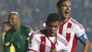 Y siguió inquietando el elenco albirrojo a través de pelotas paradas, como a los 17 cuando Paulo Da Silva cabeceó un córner hacia abajo, pero Jefferson se lució y neutralizó el intento. Hasta que en el minuto 26, Thiago Silva saltó junto a Santa Cruz con el brazo abierto dentro del área y bajó la pelota con la mano. Derlis González ejecutó la pena máxima y pese al esfuerzo de Jefferson dejó las cosas igualadas, un justo premio para el voluntarioso elenco guaraní.