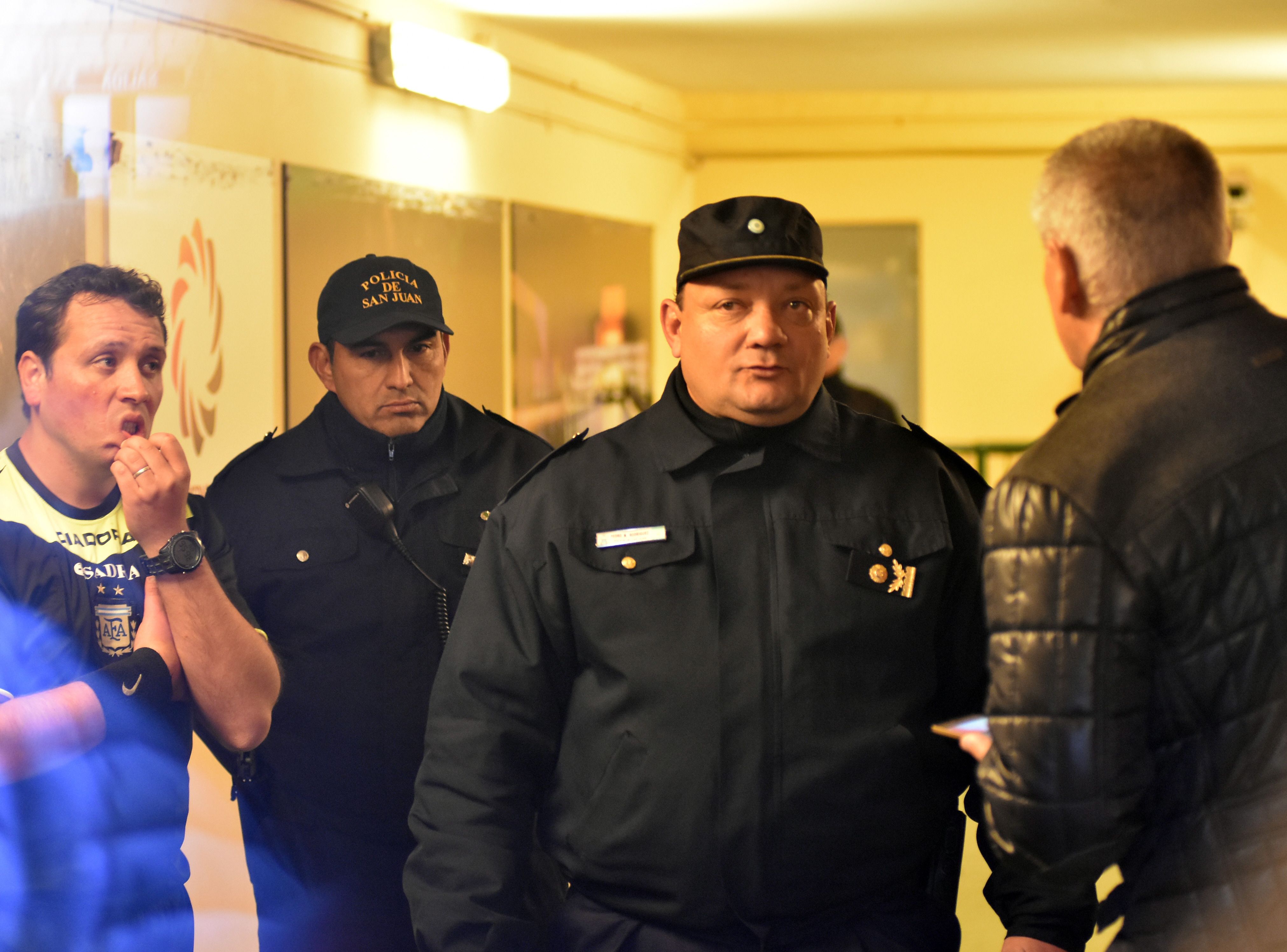 Cuando los disturbios en la tribuna Este ya habían pasado, provocando un detenido y destrozos en los baños de ambas cabeceras, todo hacia indicar que la semifinal seguiría. Pero el árbitro Sebastián Fernández no lo hacía por una simple razón: el comisario Pedro Rodríguez no le daba el aval para continuar debido a que le expresó que "con dos parcialidades no se puede jugar, ya se lo habíamos dicho a los dirigentes. Ya hubo problemas y habrá mayores si sigue el encuentro". En ese momento, dentro del campo de juego ya se encontraba el presidente de la Liga Sanjuanina de Fútbol, Alberto Platero, "pidiendole" al jefe del operativo "una chance más" para proseguir. Ante el "no" del jefe policial se fueron al hall de entrada al campo de juego a conversar entre árbitro, dirigente y comisario. La reunión se extendió por una decena de minutos y se "destrabó" por un llamado que llegó desde un sector del poder provincial, según contaron diversas fuentes consultadas. Luego, no hubieron más disturbios pero se vivió algo por demás curioso y que marca un alto grado de desorganización: parte del "acuerdo" para continuar la semifinal fue que cada presidente de club, Juan Valiente (por Desamparados) y Daniel Peña (de Unión) debía ubicarse en la popular de sus hinchas, como un modo de "desactivar" cualquier intención de generar nuevos conflictos. Insólito por dónde se lo mire.