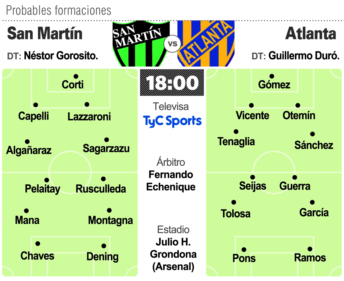 San Martín, que viene con buen ritmo futbolístico y obteniendo resultados favorables en el torneo de Primera División, buscará darle continuidad hoy cuando debute en la presente edición de la Copa Argentina (el ganador clasifica a la Libertadores) enfrentando a Atlanta (Primera B Metropolitana). El partido, correspondiente a los 32avos de final, se disputará en cancha de Arsenal, a las 18 y con televisación de TyC Sports.